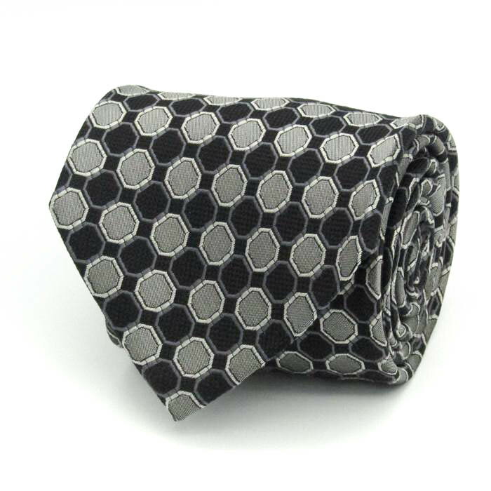 カズタカカトウ ブランド ネクタイ シルク 格子柄 小紋柄 メンズ ブラック KAZUTAKA KATOH 【中古】