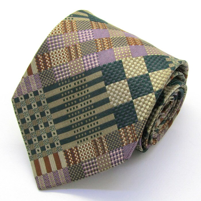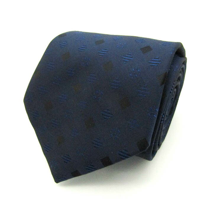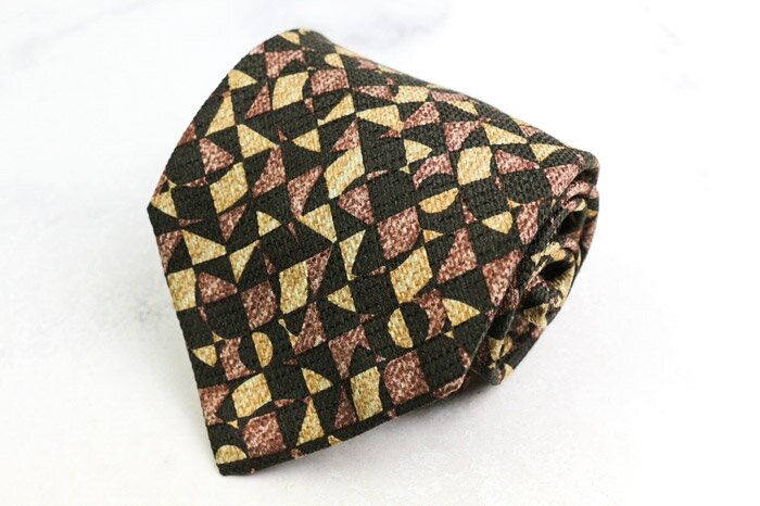 クリッツア ブランドネクタイ 総柄 幾何学模様 パネル柄 シルク メンズ ブラウン KRIZIA 【中古】