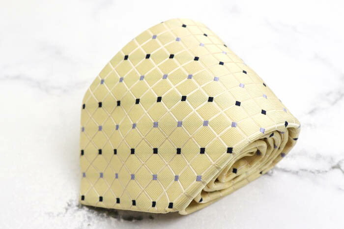ファットゥーラ ブランドネクタイ 格子柄 スクエア柄 シルク 日本製 メンズ イエロー FATTURA 【中古】