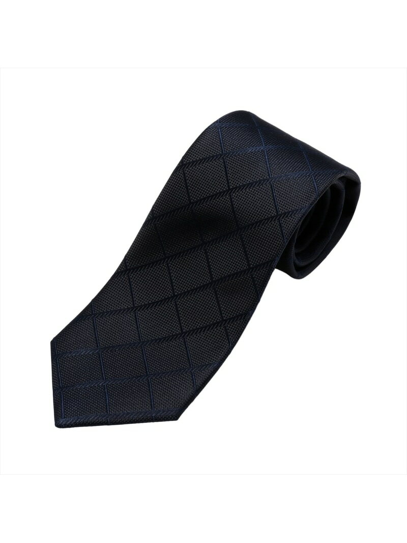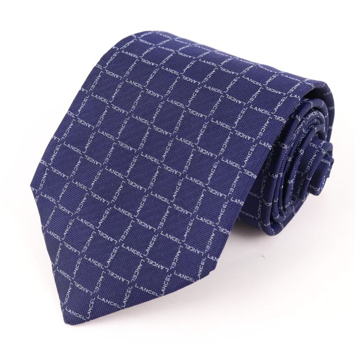 LANCEL ランセル ブランドネクタイ ロゴグラム柄 格子柄 シルク メンズ ネイビー 【中古】