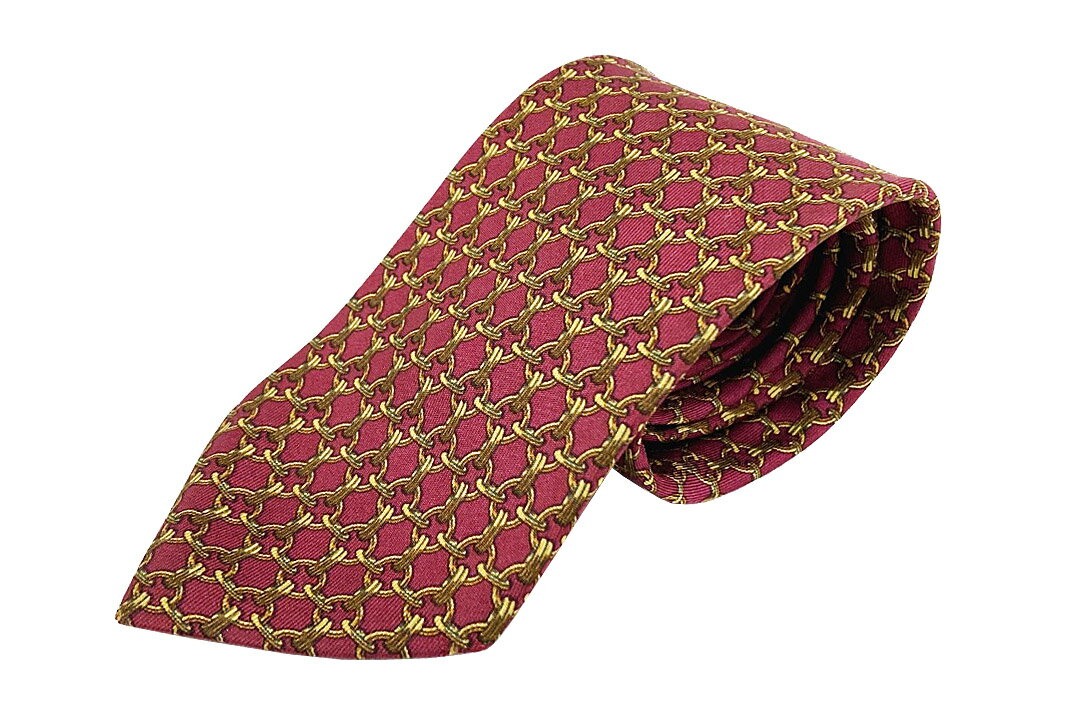 HERMES(エルメス)ネクタイ 59EA シルク 総柄 ボルドー/イエロー【中古】【人気】【良品】10203.