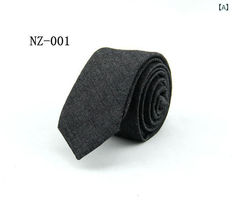 ネクタイ メンズ 男性用 無地 コットン デニム ナロータイ 6cm幅 幾何学模様 紳士 幾何学模様 カジュアル