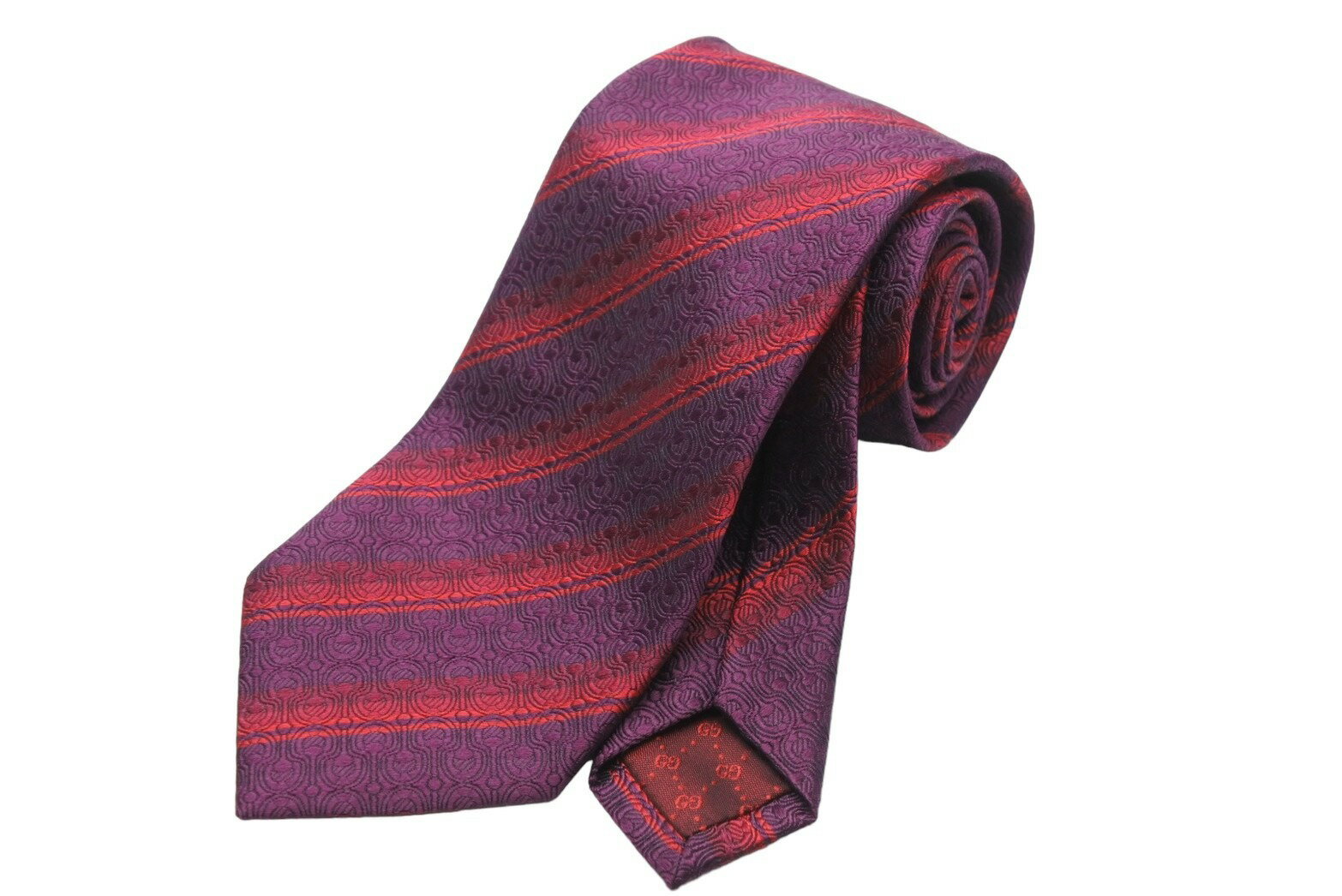 GUCCI グッチ ネクタイ ストライプ 総柄 GG トムブラウン期 シルク レッド パープル 美品 中古 51818