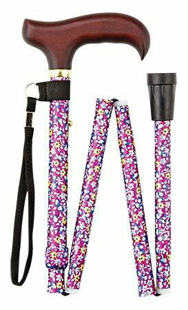 杖 折りたたみ 軽量 おしゃれ プレゼント ステッキ コンパクト 持ち運び 中嶋次朗商店 アルミ4段式 花柄 楓グリップ(折りたたみ)