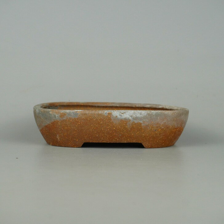 【中古】盆栽鉢 常滑 知 服部 小型 長辺 約 15.5cm 楕円鉢 泥物 現品 中古鉢 送料無料