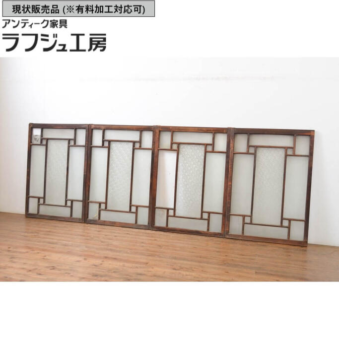 ▼現状販売▼ アンティーク建具 ガラス窓 4枚セット ガラス戸 引き戸 大正ロマン レトロ 和風 和モダン ラフジュ工房 送料無料 r-064586