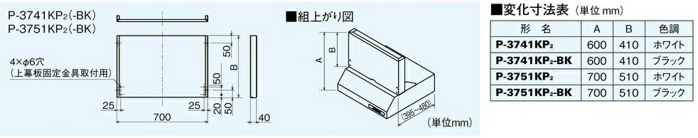 (LINEクーポン有)三菱電機 P-3741KP2 浅形レンジフードファン用システム部材 上幕板