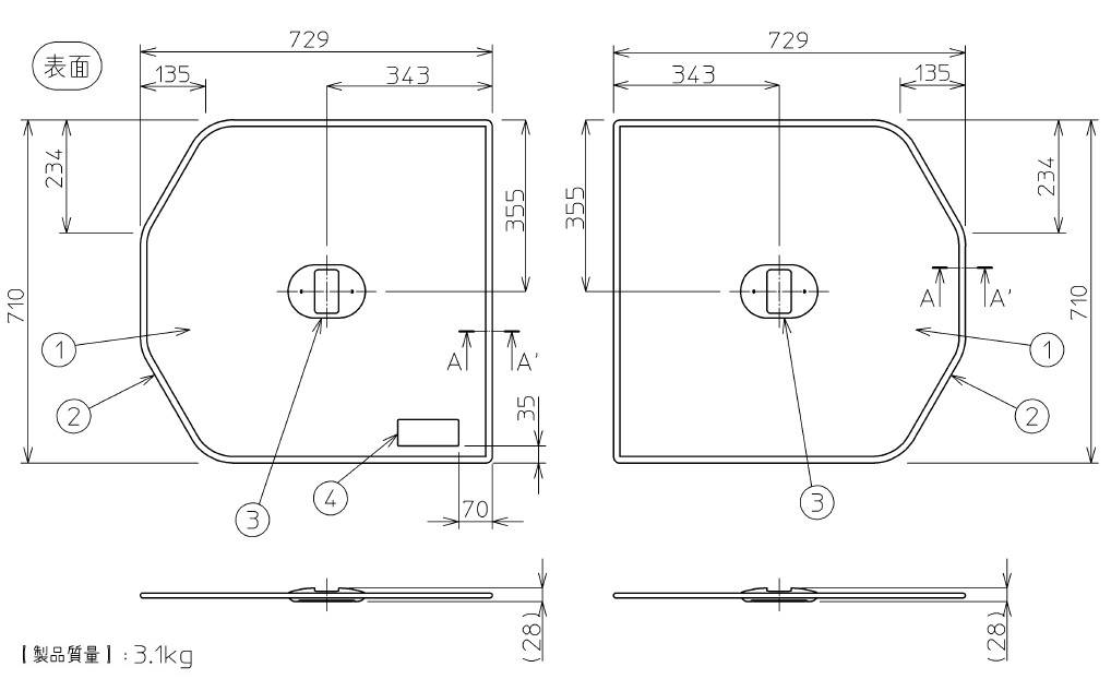 TOTO AFトツテツキ2マイフタ KC1600サイズ(把手付2枚蓋KC1600サイズ) 【品番:EKK81018WWG5】