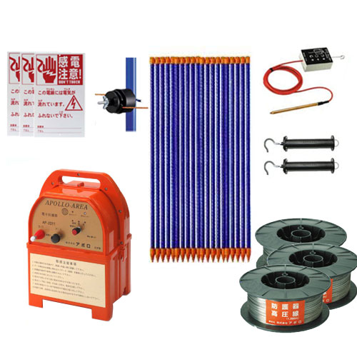 イノシシ クマ用 電気柵セット 100m X 3段張り セット アポロ 電気柵 AP-2011 電池別売 FRP支柱φ14mm X 900mm