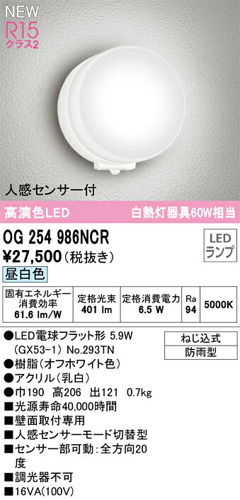 オーデリック 人感センサー付軒下用シーリング OG254526R 白熱灯100W相当 電球色 高演色 工事必要