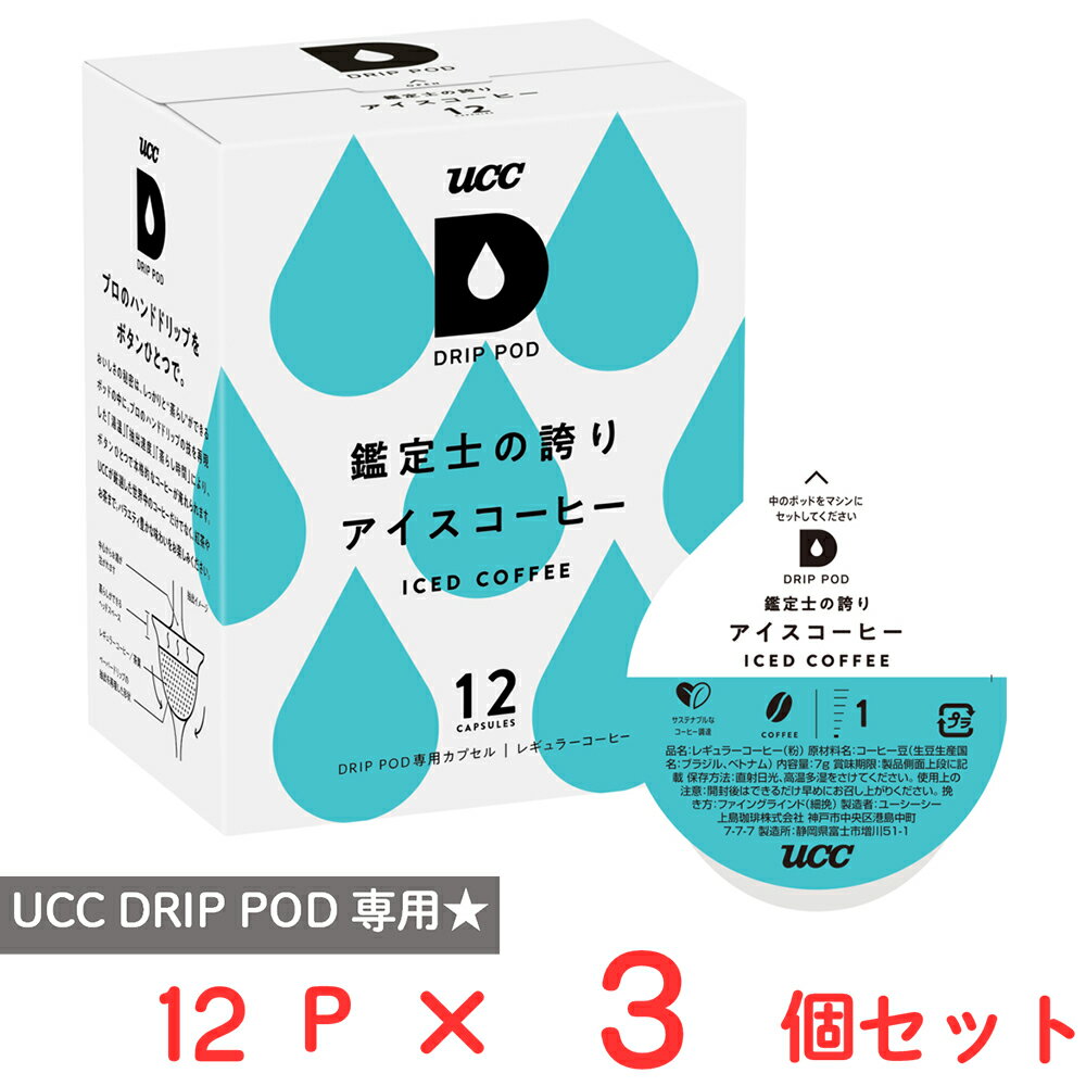 UCC DRIP POD 鑑定士の誇り アイスコーヒー 12パック×3個