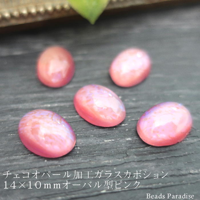 チェコオパール加工ガラスカボション14×10mm オーバル型 ピンク(1個入り)