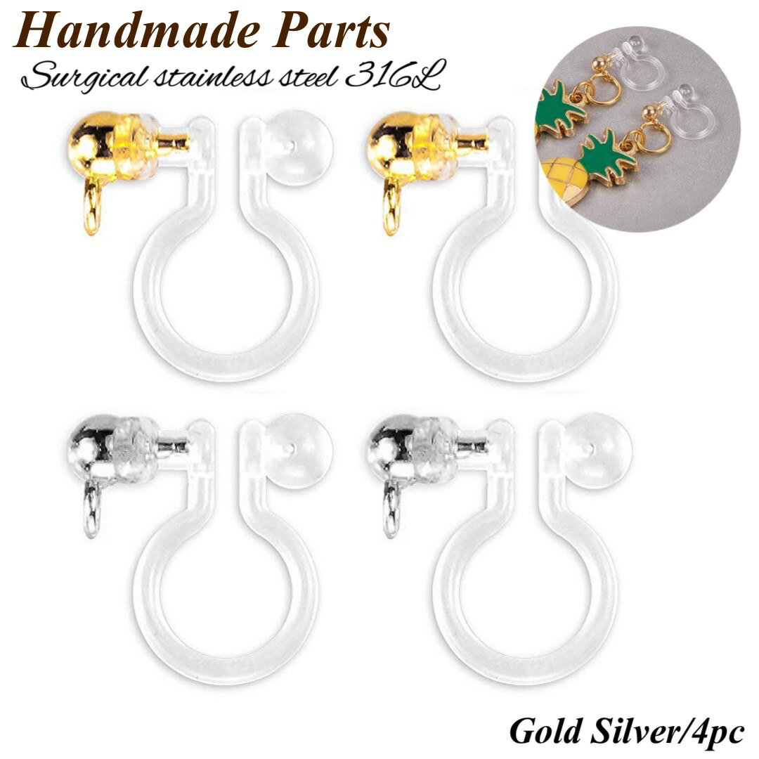 【4個】アレルギー防止ステンレス、ノンホールピアス 樹脂 パーツ カン付き 横カン 丸玉 イヤリング 金アレ対応