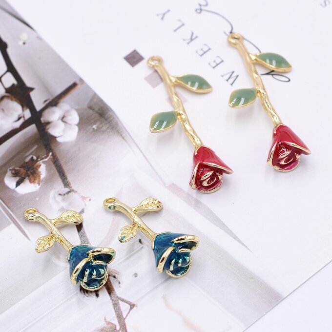 即日発送!立体エポ付きチャーム 薔薇 バラエポ付きチャーム ばらモチーフ 1カン 全2種 ゴールド(4ヶ)