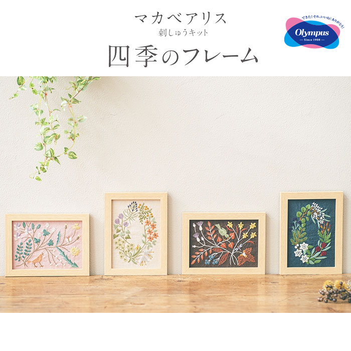 オリムパス マカベアリス 刺しゅうキット 四季のフレーム 中級者向け 図案プリント済 専用フレーム付 (取り寄せ品) (メール便可)