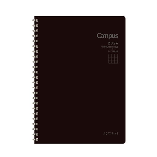 コクヨ手帳2026キャンパスソフトリングダイアリーマンスリーブロックA5ブラックニ-SMND-A5-262025年12月始まり