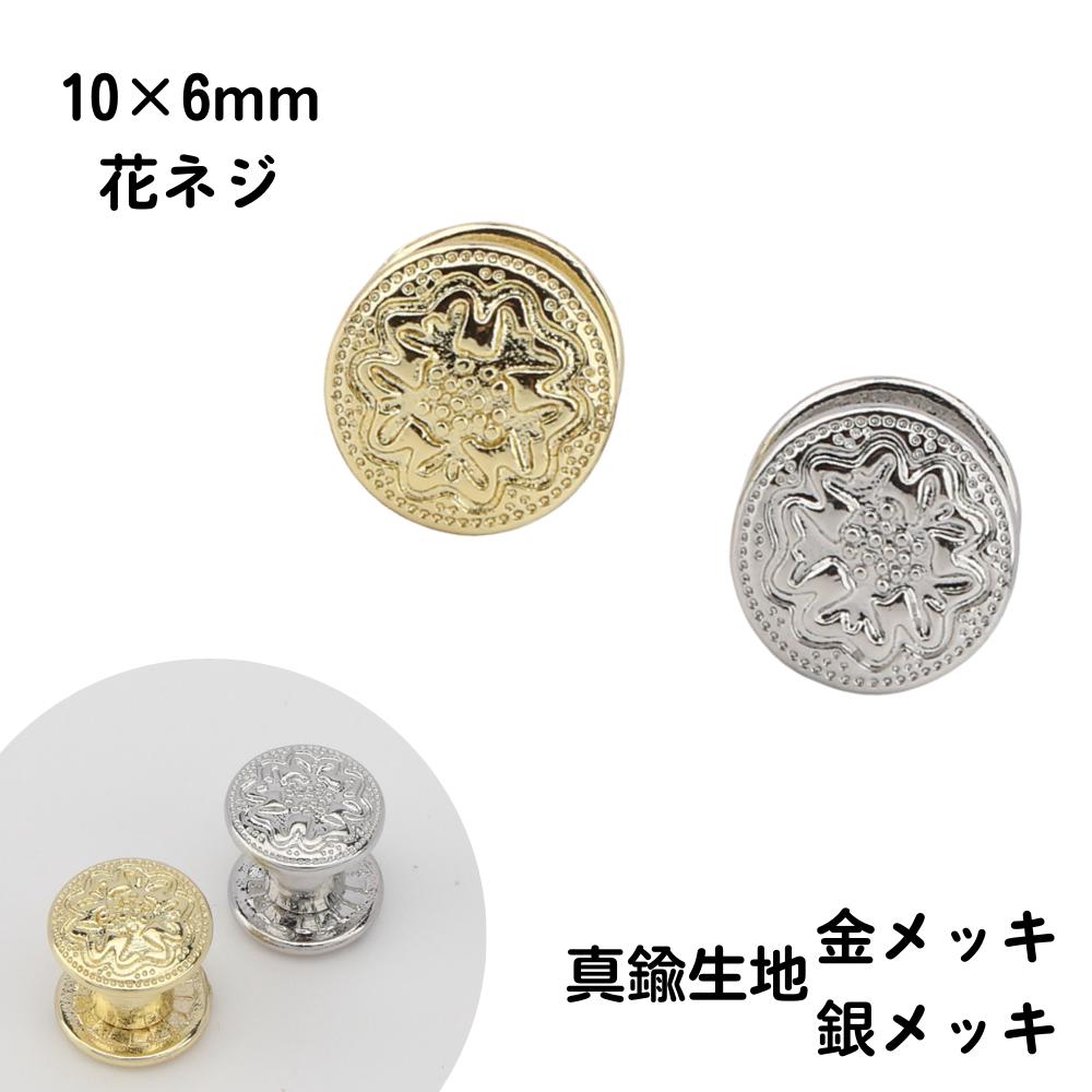 SENWA 真鍮生地 金・銀メッキ 10✖️6mm 花柄組ネジ レザークラフト 材料 資材 パーツ