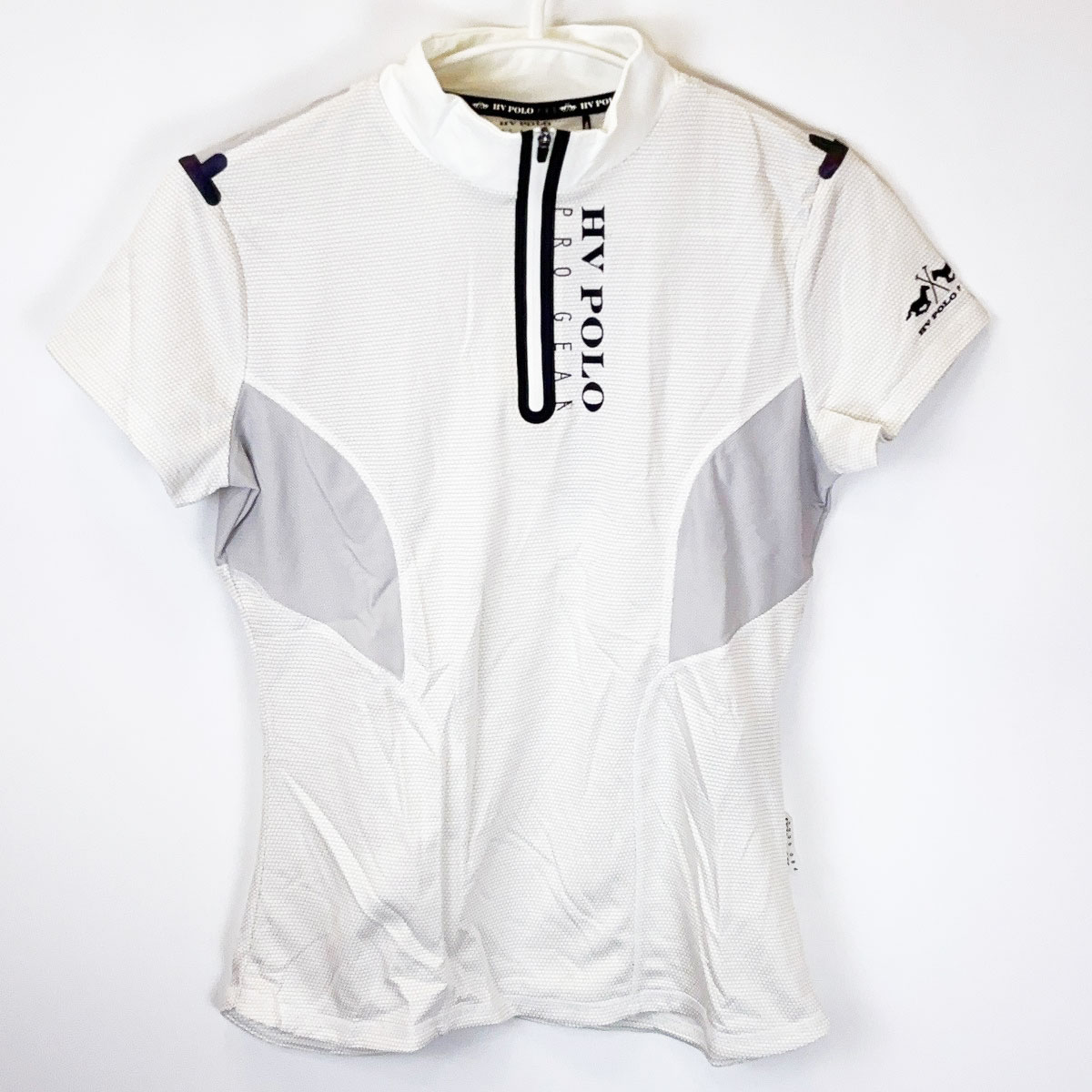 【中古・未使用品】HV POLO ハーフジップシャツ 半袖 ライディングシャツ S ホワイト 116204 レディース 乗馬 馬術