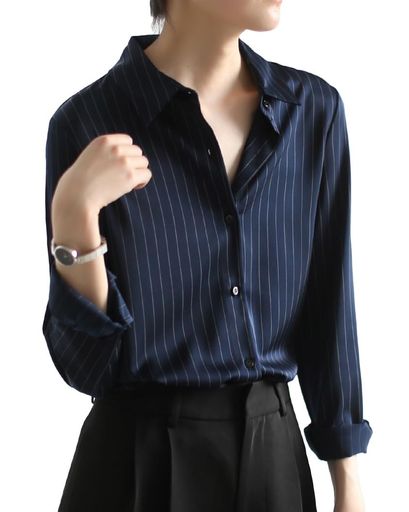 [RCL]レディースシャツストライプ襟付きカジュアルオフェス体型カバー春秋