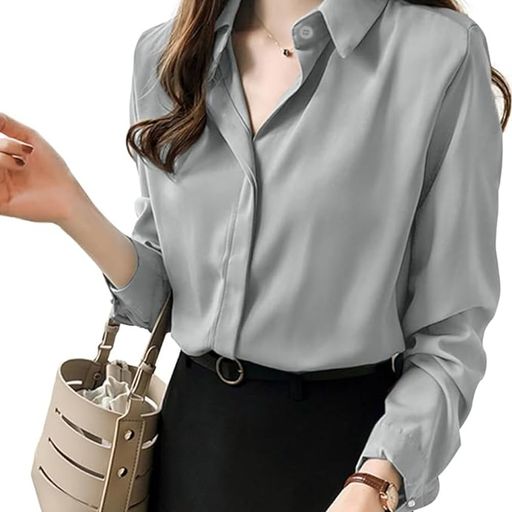 MUISHUYUブラウスレディースシャツ無地長袖折り襟シンプル着痩せおしゃれ着回しフォマール通勤トップス春秋冬YU04(2XLグレー)