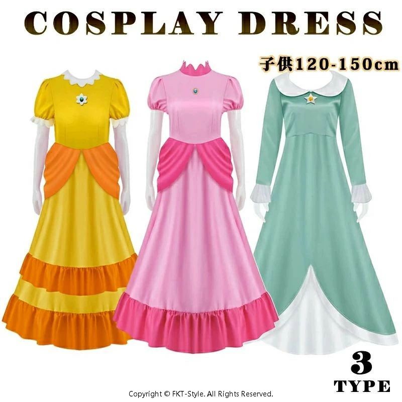 コスチューム ドレス なりきりプリンセス 女の子 ドレス デイジー姫風 ピーチ姫風 ロゼッタ風 コスプレ衣装
