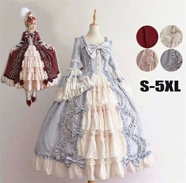 ロリータ ワンピース ゴスロリ コスチューム コスプレ 衣装 姫 メルヘン エレガント 中世 宮殿 風 プリンセス ドレス かわいい 白 水色
