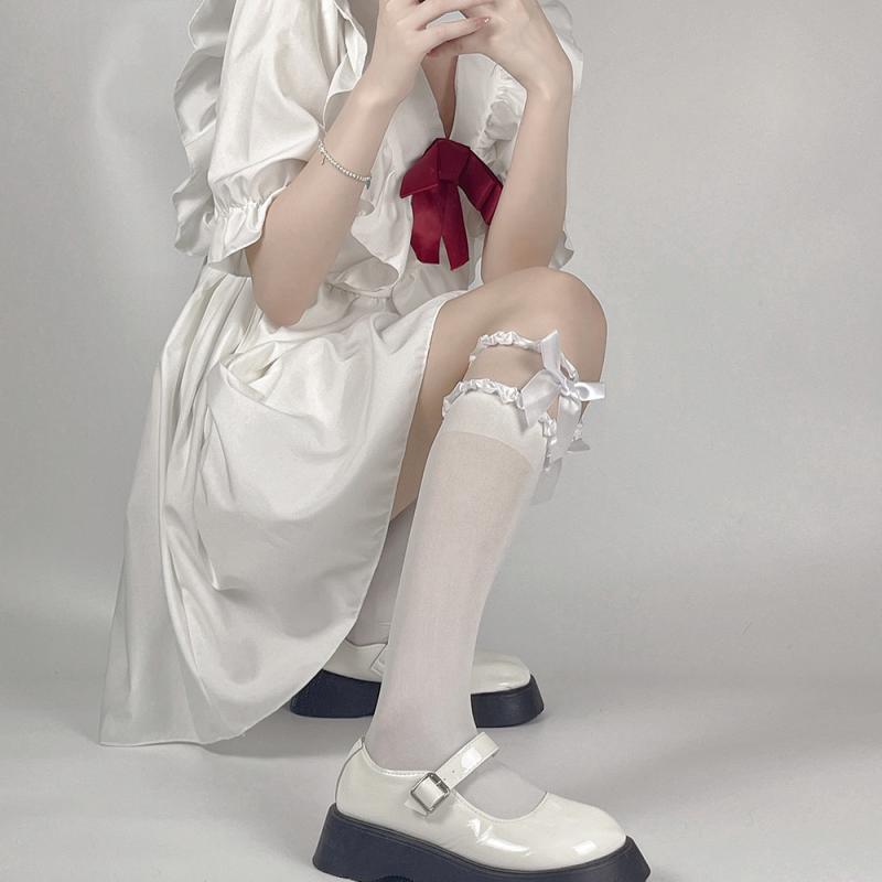 My Luxury ニーハイソックス ネットシームリボン ブラック 仮装 コスプレ コスチューム