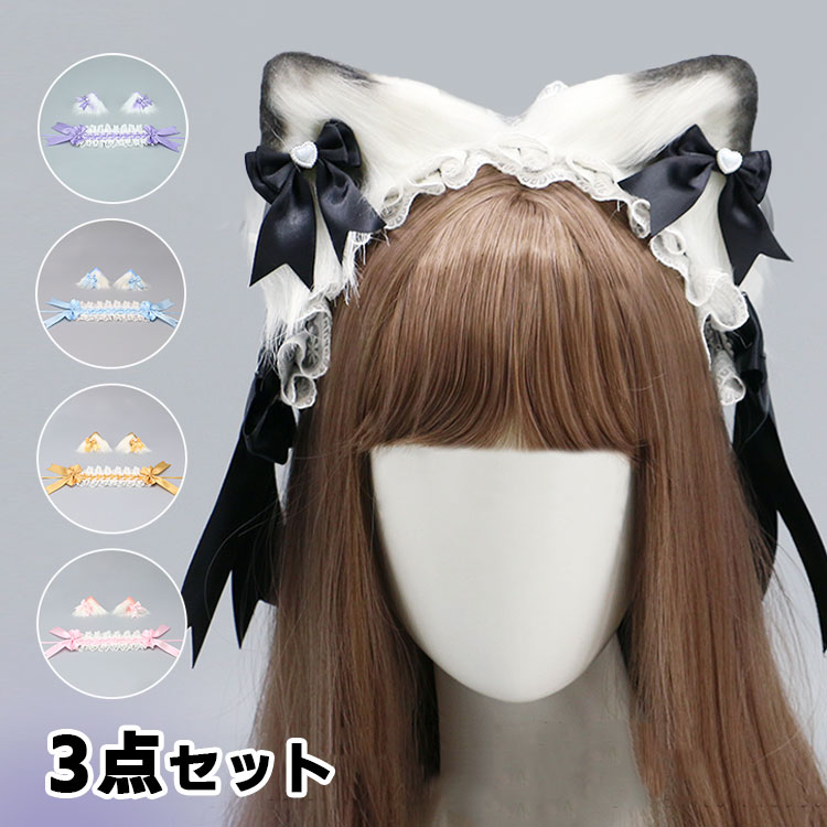 ヘッドアクセサリー レディース ロリータ コスプレ 小物 ガーリー 人形 カチューシャ かわいい リボン 青 白 サブカルチャー