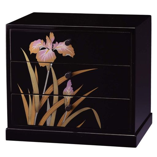 中西工芸新和風三つ引きタンス蒔絵金あやめ日本製2281010