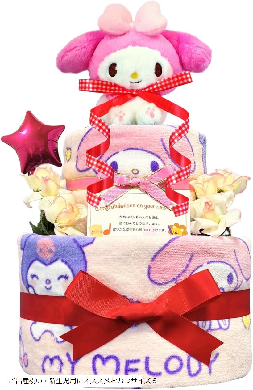 おむつケーキ 女の子 出産祝い 赤ちゃん 誕生日 ベビーシャワー ギフト (ピンク, 2段 Sサイズ)