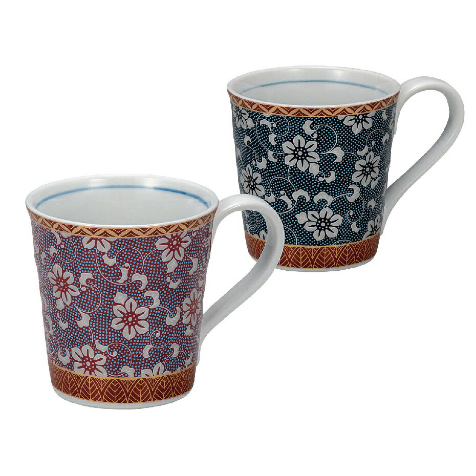 日本の伝統工芸品【九谷焼】ペアマグカップ 鉄仙文
