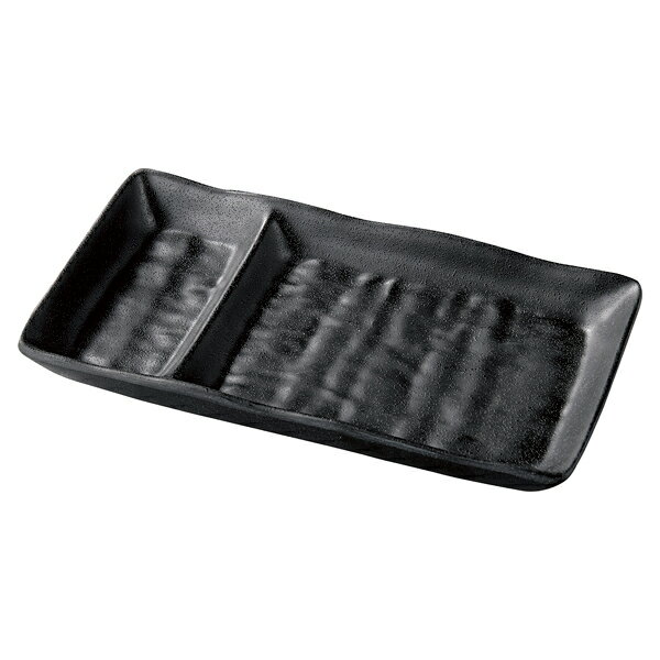 和食器 ヌ724-278 [M]17.8ひねりタレ付ナタ目長角皿 黒マット【厨房館】