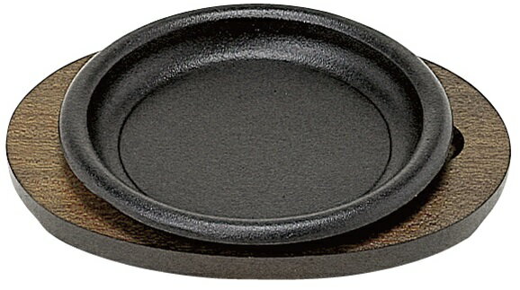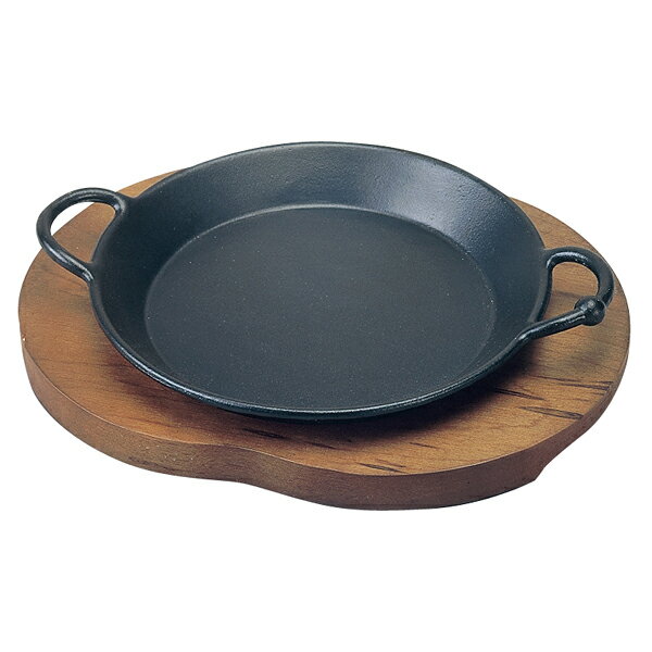和食器 ヌ734-058 [鉄・木]丸型ステーキ鉄皿 (木台付)22cm【厨房館】