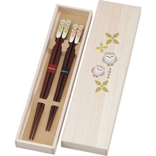 【ギフト包装・のし紙無料】吉兆桐箱入 夫婦箸 笑ふくろう 39288(A4)