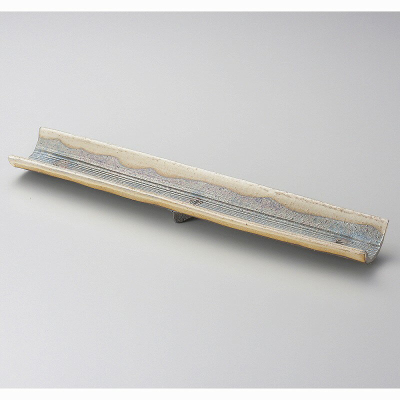 ときわ 第28集 黒窯変掛け分け14.0足付長皿 メ124-018