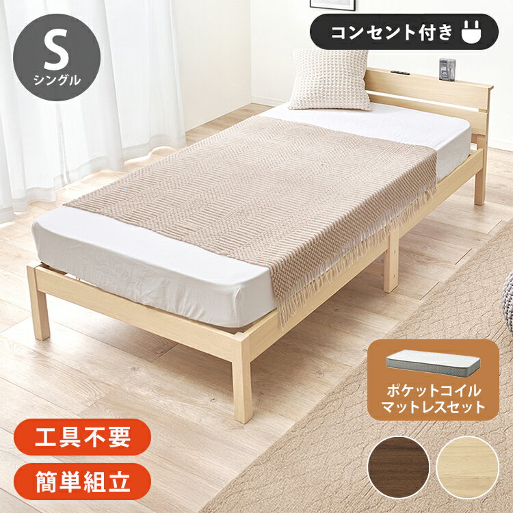 棚・コンセント付きフロアベッド スタンダードボンネルコイル マットレス付き セミダブル