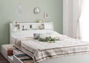 高級ウォルナット材ワイドサイズ収納ベッド 最高級国産ナノポケットコイルマットレス付き スリムタイプ ダブル レギュラー丈