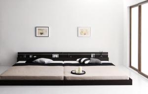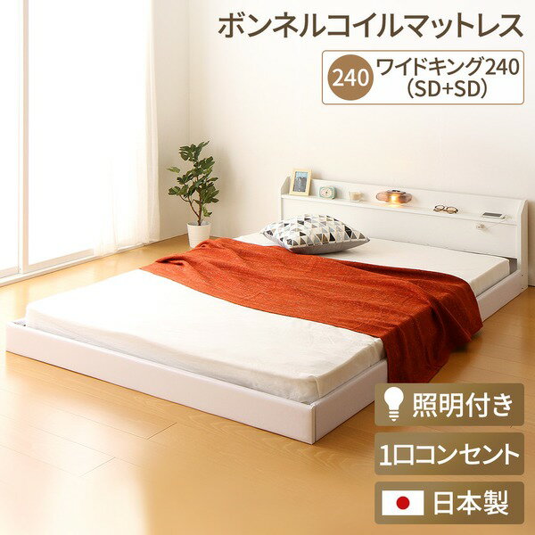 モダンライト・コンセント付き国産フロアベッド ポケットコイルマットレス付き ワイドK240(SD×2)