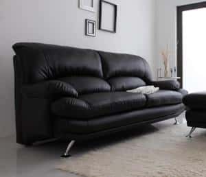 ハイバックソファ レザータイプ ソファ スチール脚 3P