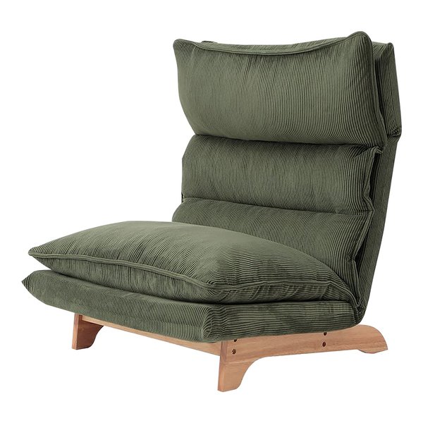 脚付きリクライニングローソファ 1人掛け コーデュロイグリーン【代引不可】