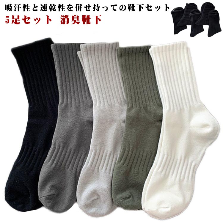 ビジネ 無地 防臭 セット 消臭靴下 5足 リブ編み メンズ 臭わない 学生 靴下 ソックス 男性用 蒸れない くつした 暖かい くつ下