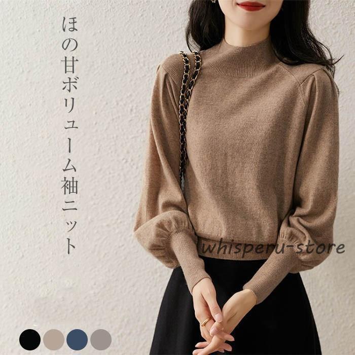 ニットセーター パフ袖 リブニット 30代 40代 レディース秋 秋服 ニット セーター 冬服 ぽわん袖 ボリューム袖 バルーン袖 長袖