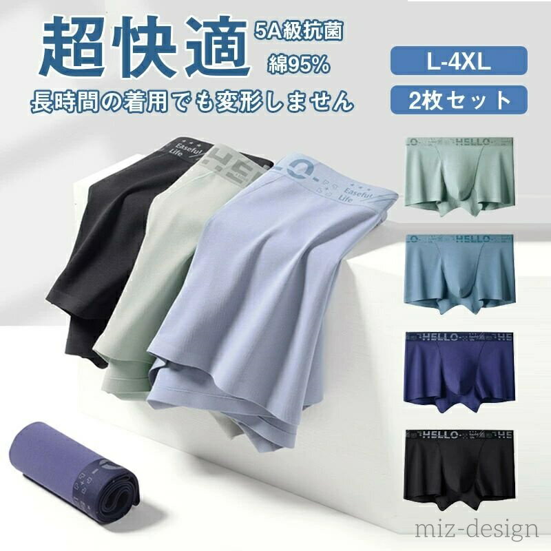 【送料無料】肌に優しい 高品質 抗菌防臭 速乾 吸汗 通気 涼感アンダーウェア メンズパンツ軽量 同色2枚組 ボクサーパンツ