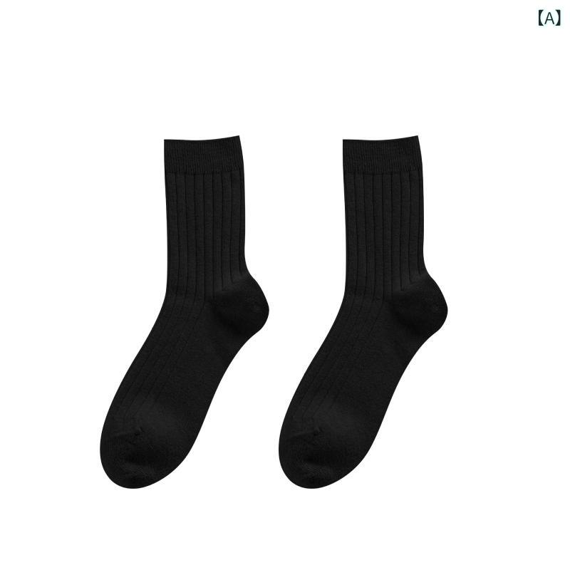 靴下 メンズ 男性用 秋冬 あったか ウール 混 厚手 パイル ソックス 吸汗 防臭 ミドル丈 リブ 無地 黒 茶色 グレー カーキ
