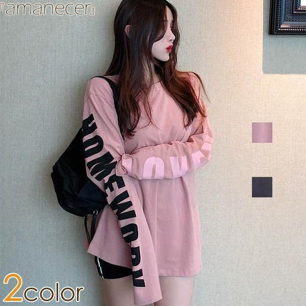 Tシャツ ゆったり ゆるT 英字 配色 長袖 ゆったりTシャツ レディース トップス