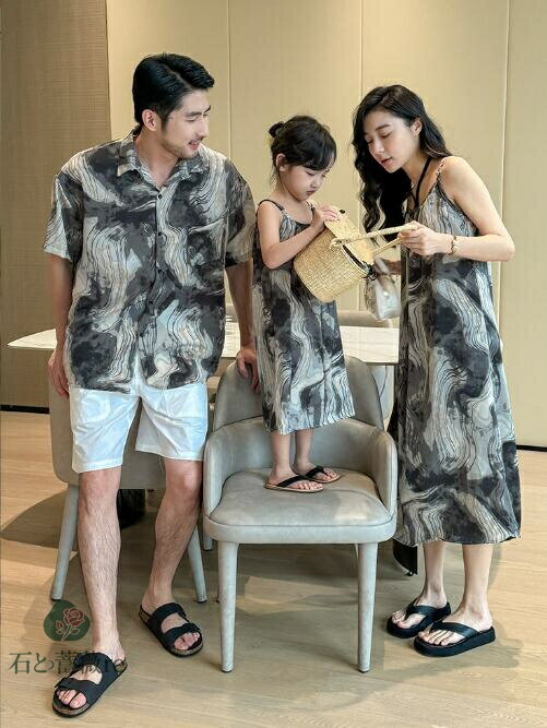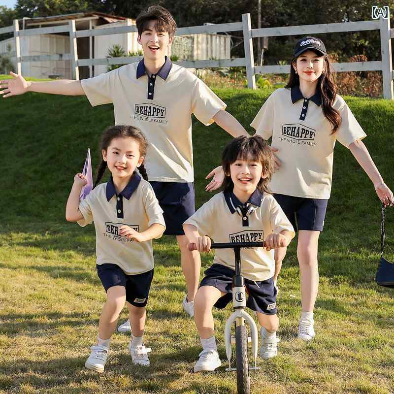 親子の 夏服 2024 ファミリー 服 高級 3人または 4人 家族 スーツ 綿 Tシャツ 春
