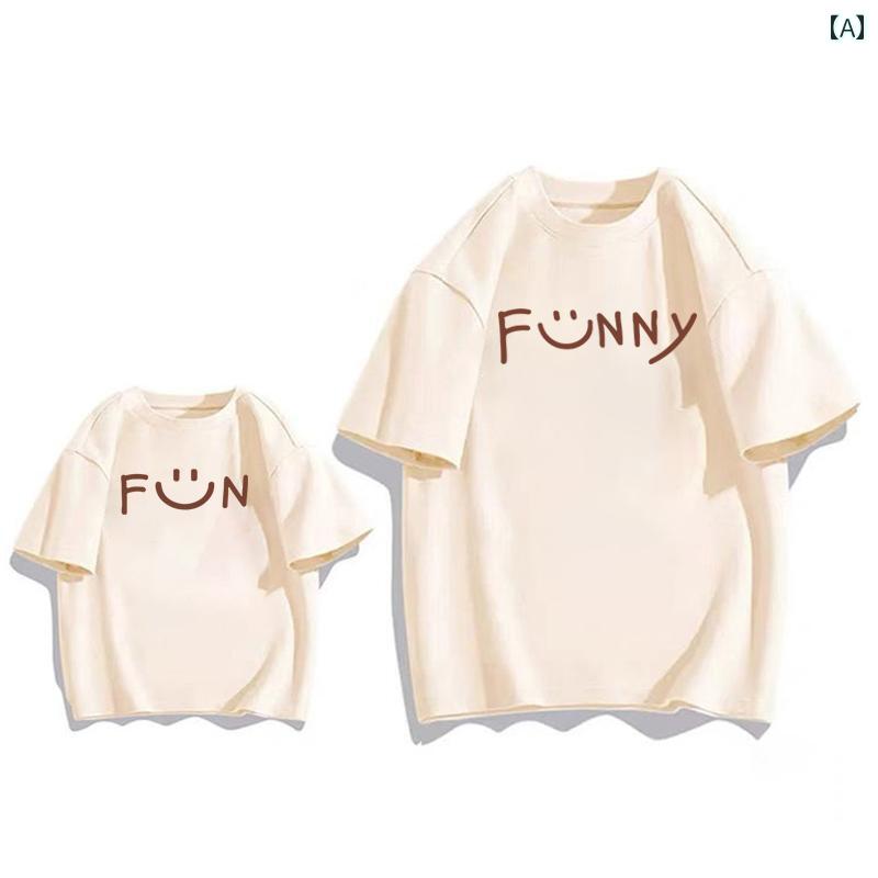 親子の服装 半袖 Tシャツ 3人家族または4人 家族 母子 赤ちゃん スマイル ロゴプリント ロンパース
