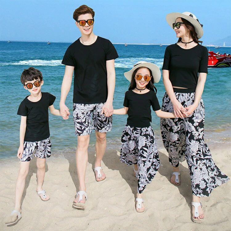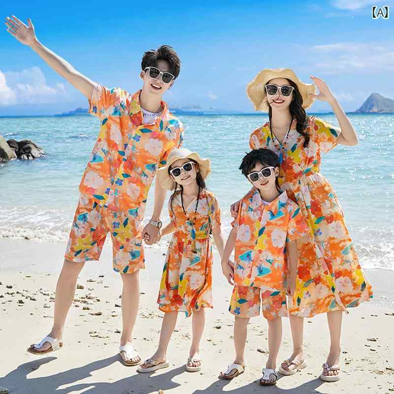 3人または 4人 家族向け 高級 親子 夏服 ボヘミアンな 母と 娘の ドレス 旅行 休暇 ビーチ スーツ