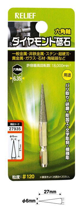 [1点までメール便可]RELIEF 六角軸 ダイヤモンド砥石 no27935 日本製