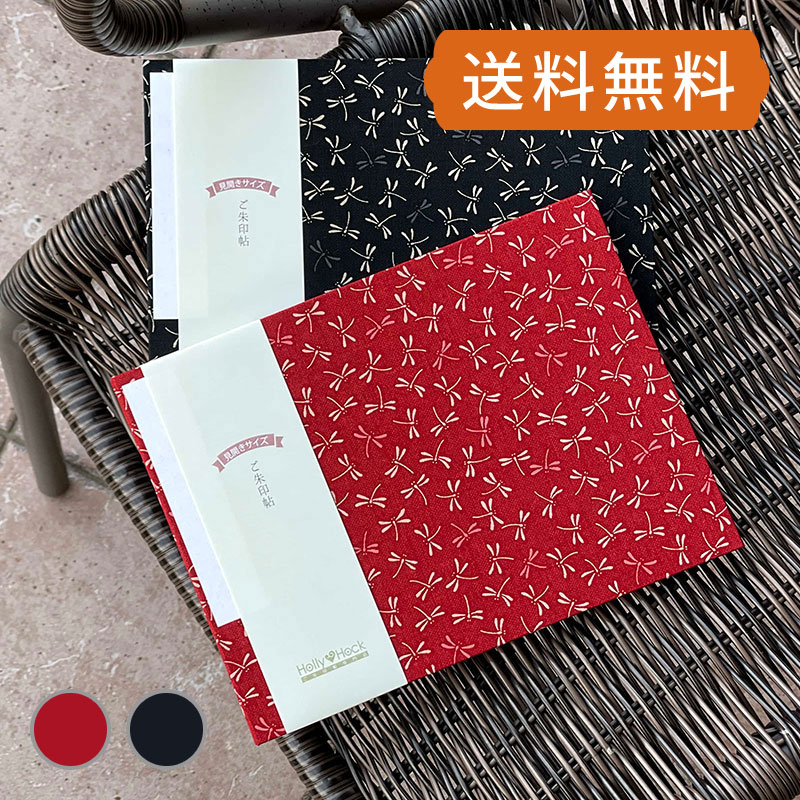 見開き御朱印帳 蛇腹式 大判 24.5x18.cm 二色とんぼ(黒/赤) ご朱印帳 見開きサイズ ホリーホック 《メール便 送料無料 》